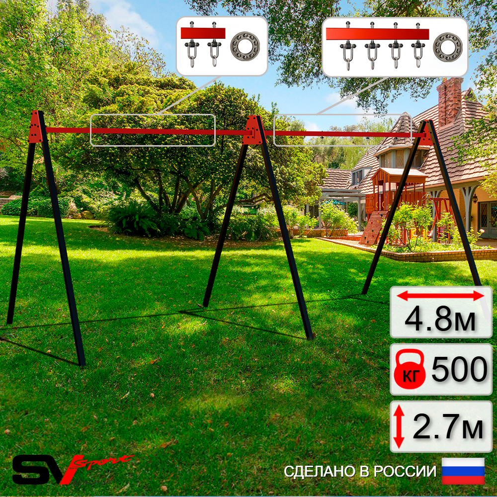 КОМПЛЕКТАЦИЯ: Каркас УК Sv Sport Maxi 4.8м, Подвесы для качелей на подшипниках Sv Sport 3 компл.