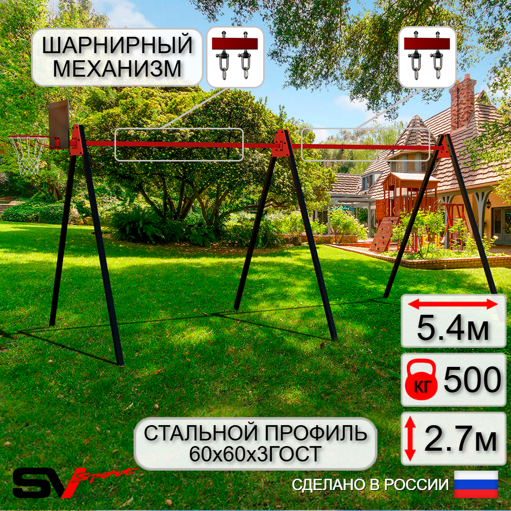 КОМПЛЕКТАЦИЯ: Каркас УК Sv Sport Maxi 5.4м, Щит баскетбольный Sv Sport c кронштейном к УК Sv Sport Maхi, Подвесы для качелей на втулке Sv Sport 2 компл.