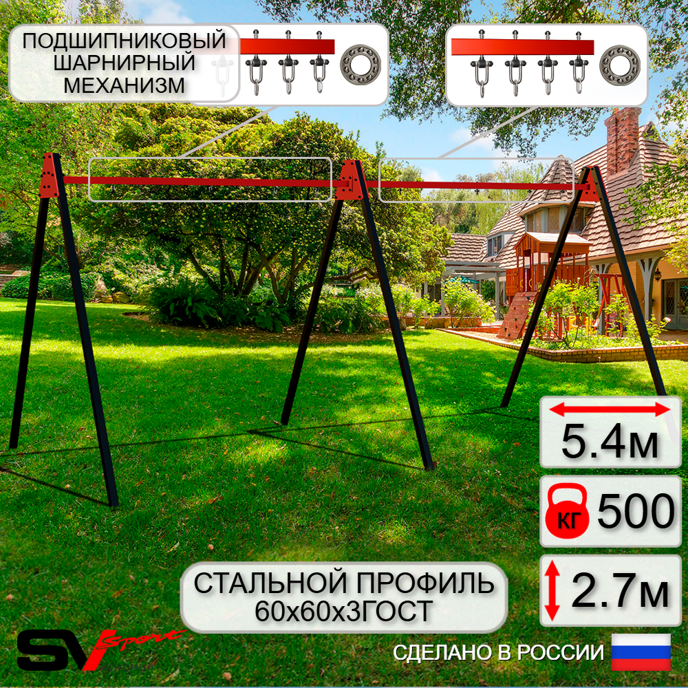 КОМПЛЕКТАЦИЯ: Каркас УК Sv Sport Maxi 5.4м, Подвесы для качелей на подшипниках Sv Sport 4 компл.