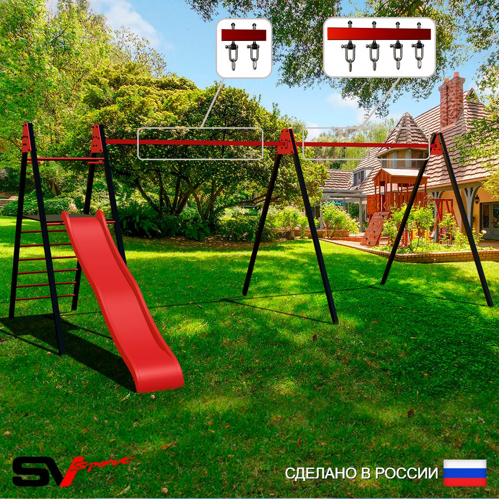 КОМПЛЕКТАЦИЯ: Каркас УК Sv Sport Maxi 5.8м, Комплект горка Sv Sport Махi к уличным качелям, Подвесы для качелей на втулке Sv Sport 3 компл.