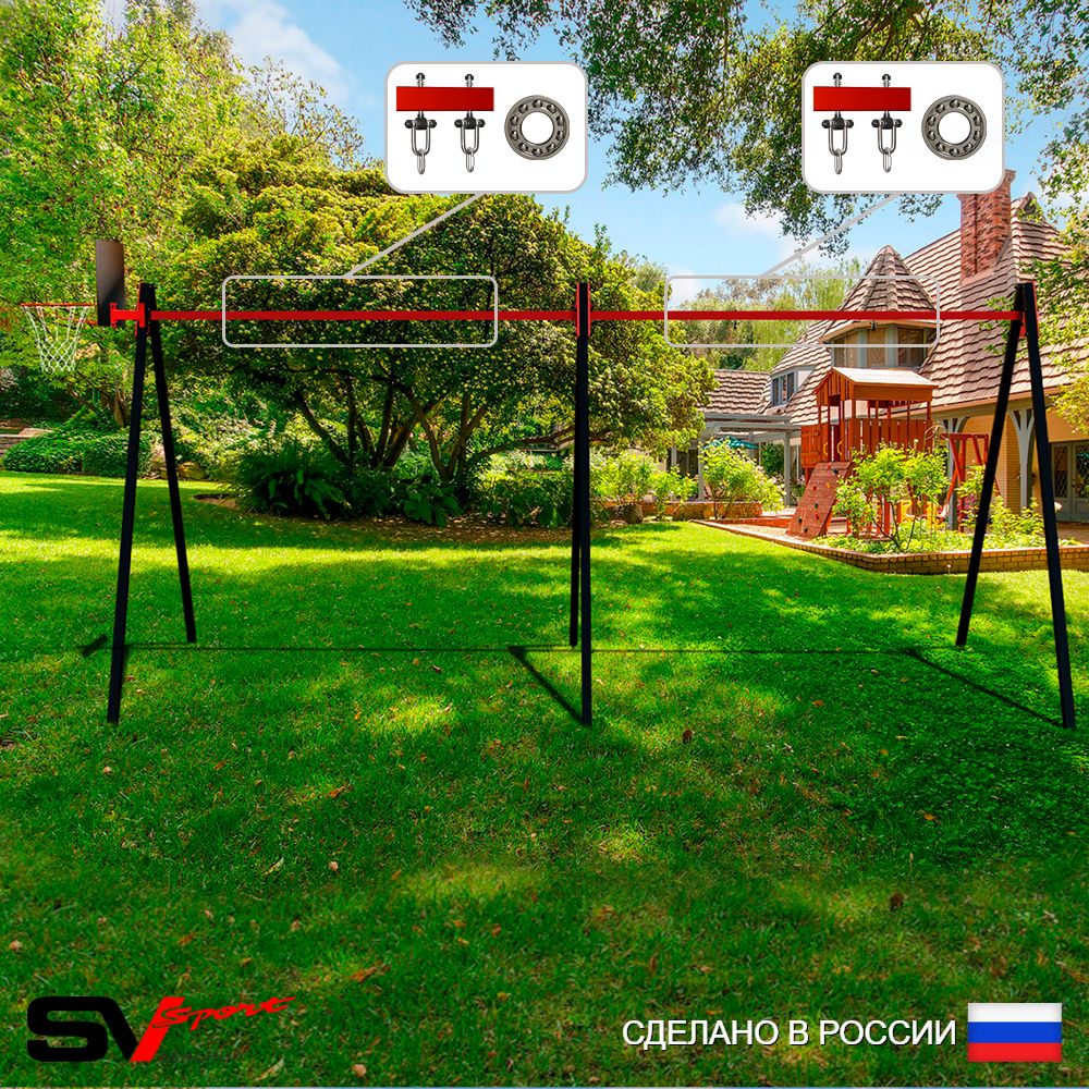 КОМПЛЕКТАЦИЯ: Каркас УК Sv Sport Maxi 6.0м, Щит баскетбольный Sv Sport c кронштейном к УК Sv Sport Maхi, Подвесы для качелей на подшипниках Sv Sport 2 компл.