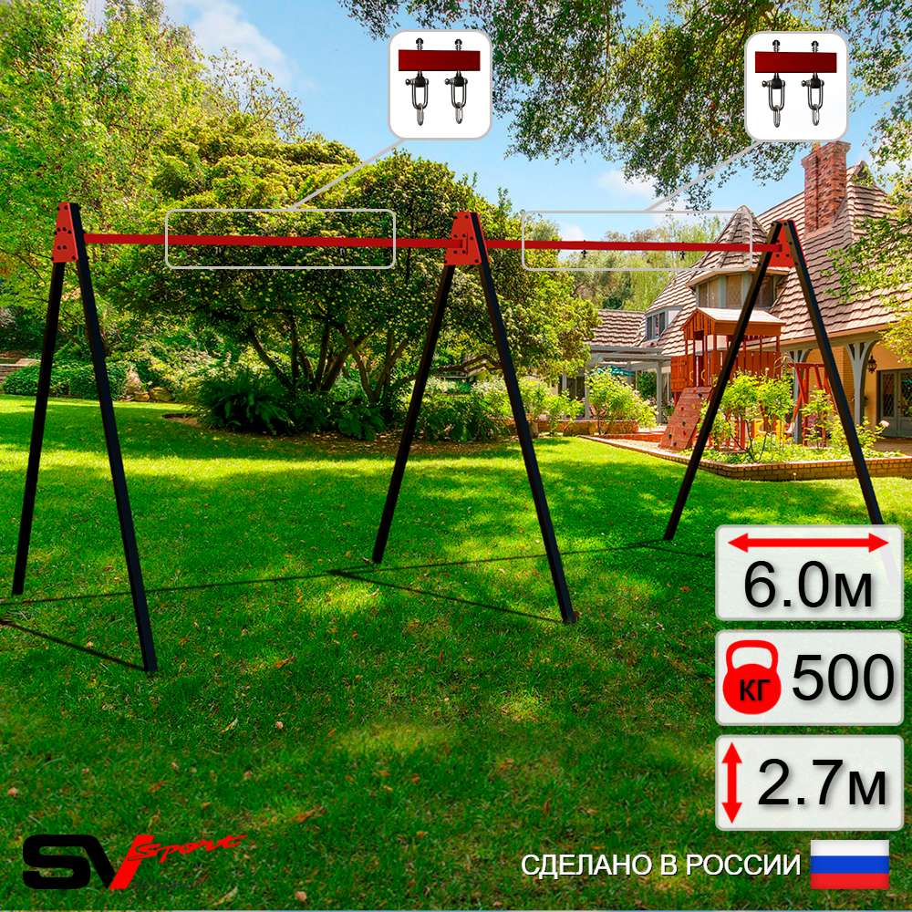 КОМПЛЕКТАЦИЯ: Каркас УК Sv Sport Maxi 6.0м, Подвесы для качелей на втулке Sv Sport 2 компл.