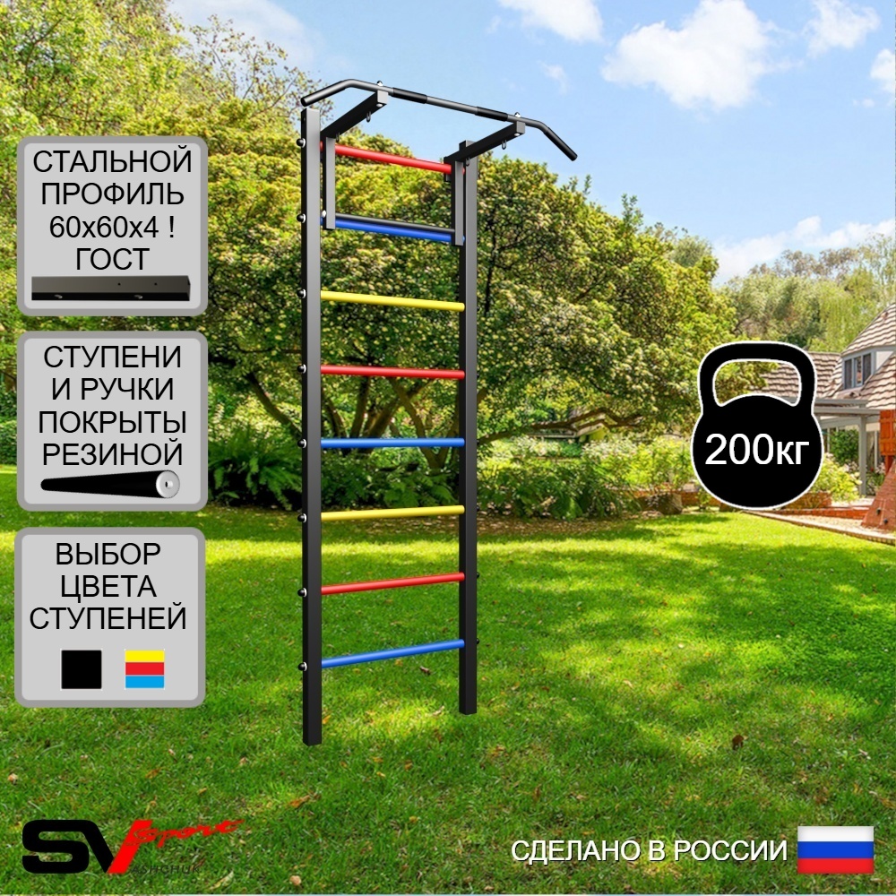 Погрузитесь в мир здорового образа жизни прямо у себя во дворе! Уличная шведская стенка Sv Sport – это идеальный тренажёр для эффективных тренировок на свежем воздухе. Удобные резиновые ступени исключают скольжение и дискомфорт при занятиях. Прочные металлические конструкции выдержат нагрузку до 200 кг, а качественная полимерная окраска защитит от внешних воздействий. Двухлетняя гарантия подтверждает надёжность этой спортивной станции! Станьте ближе к здоровью и силе вместе со Sv Sport !
