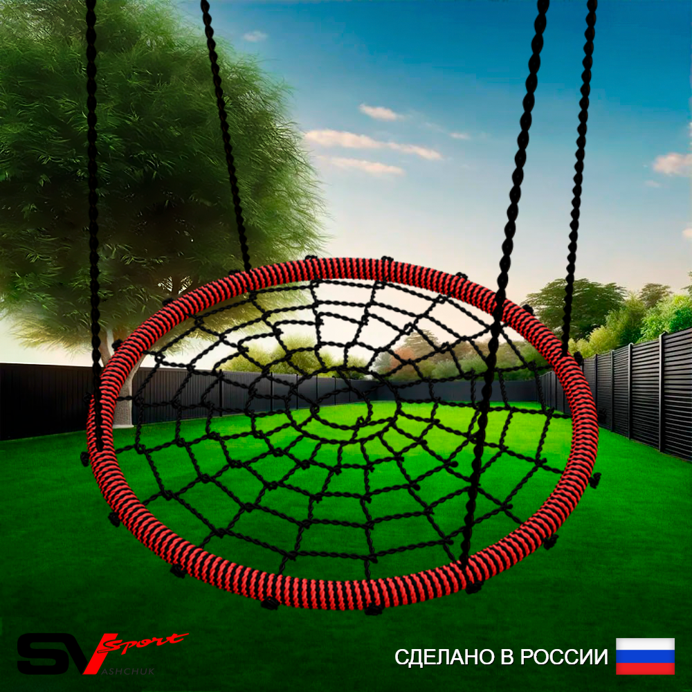 Уникальность данных качелей заключается в их способности раскачиваться как поодиночке, так и вдвоем с другом. Изготовленные из стальной трубы диаметром 45 мм, качели-гнездо Sv Sport оснащены специальными пластиковыми втулками в точках соединения тросов с металлической конструкцией, что препятствует истиранию тросов. Комплект поставки включает сами качели-гнездо Sv Sport, имеющие диаметр 100 см, а также набор крепежных элементов (карабины). Основные параметры продукта следующие: максимальный вес нагрузки 200 кг; длина подвесных тросов составляет 190 см при диаметре каждого из них в 1,4 см; диаметр обода 6 см; гарантийные обязательства на металлическую часть составляют два года, тогда как на тросы дается полугодовая гарантия от производителя.