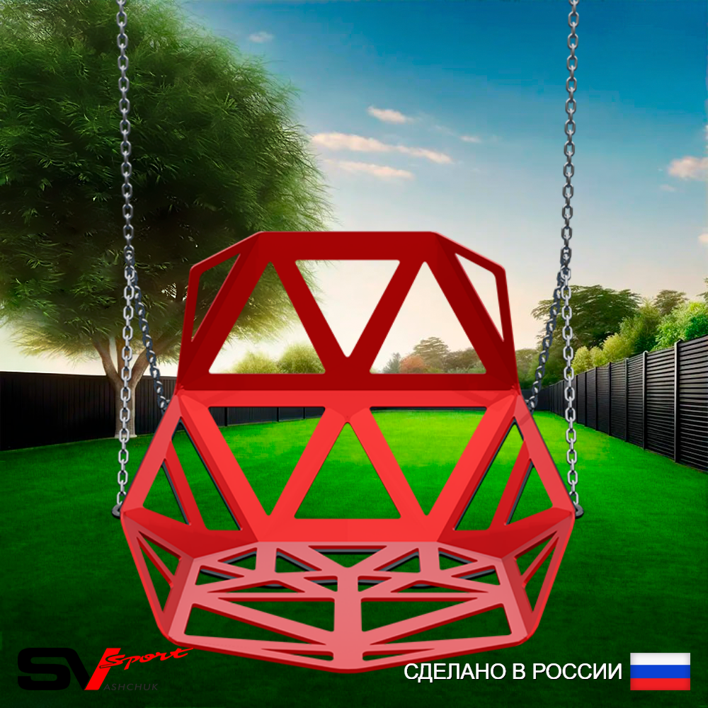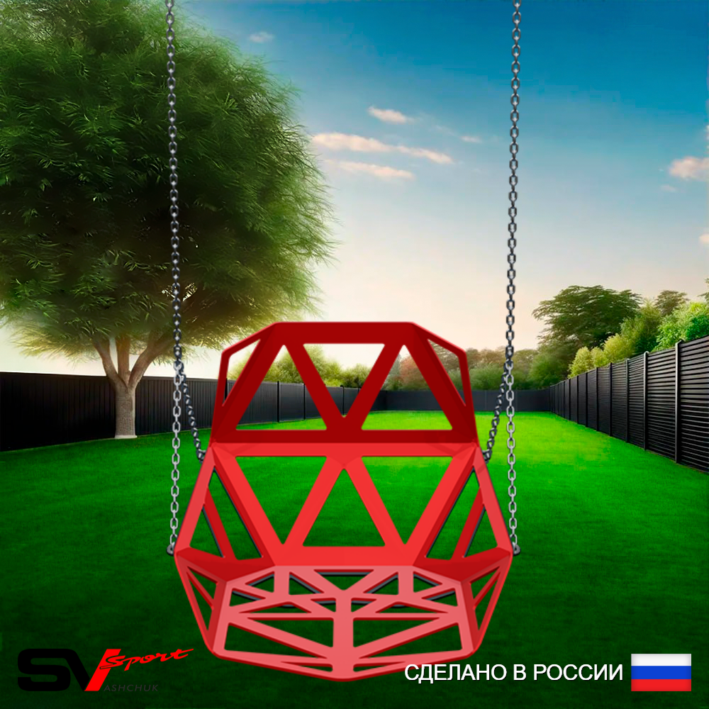 КОМПЛЕКТАЦИЯ: Качели пластиковые со спинкой, комплект цепей, карабины.