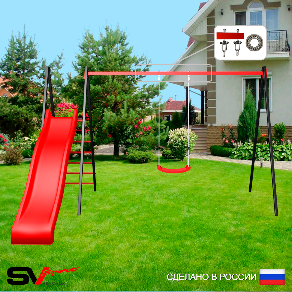 КОМПЛЕКТАЦИЯ: Каркас УК Sv Sport 3.7м, Качели пластиковые "Лодочка", Комплект горка Sv Sport к уличным качелям, Подвесы для качелей на подшипниках Sv Sport 1 компл.
