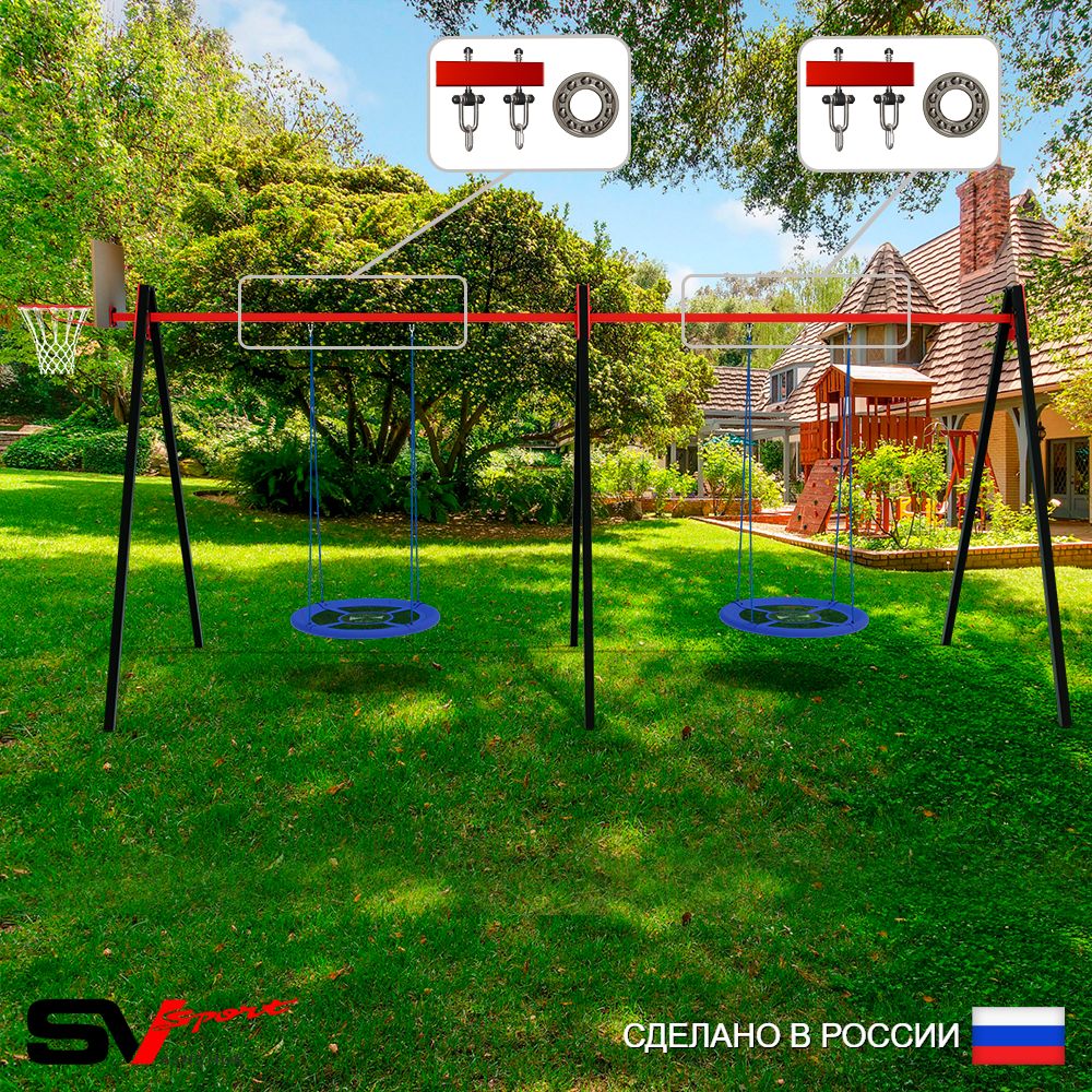 КОМПЛЕКТАЦИЯ: Каркас УК Sv Sport Maxi 4.8м, Щит баскетбольный Sv Sport c кронштейном к УК Sv Sport Maхi, Качели - гнездо Оксф. 100см 2шт, Подвесы для качелей на подшипниках Sv Sport 2 компл.