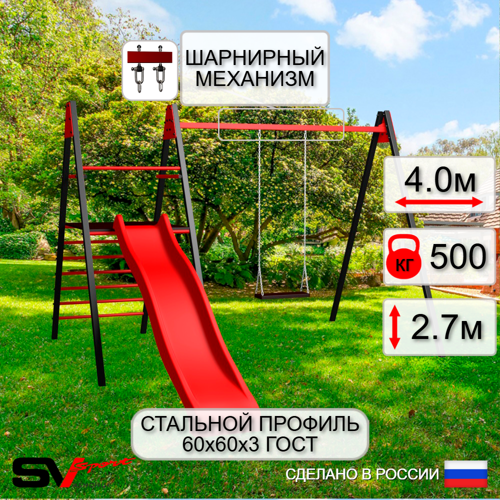 КОМПЛЕКТАЦИЯ: Каркас УК Sv Sport Maxi 4.0м, Качели деревянные на цепях Sv Sport, Комплект горка Sv Sport Махi к уличным качелям, Подвесы для качелей на втулке Sv Sport 1 компл.
