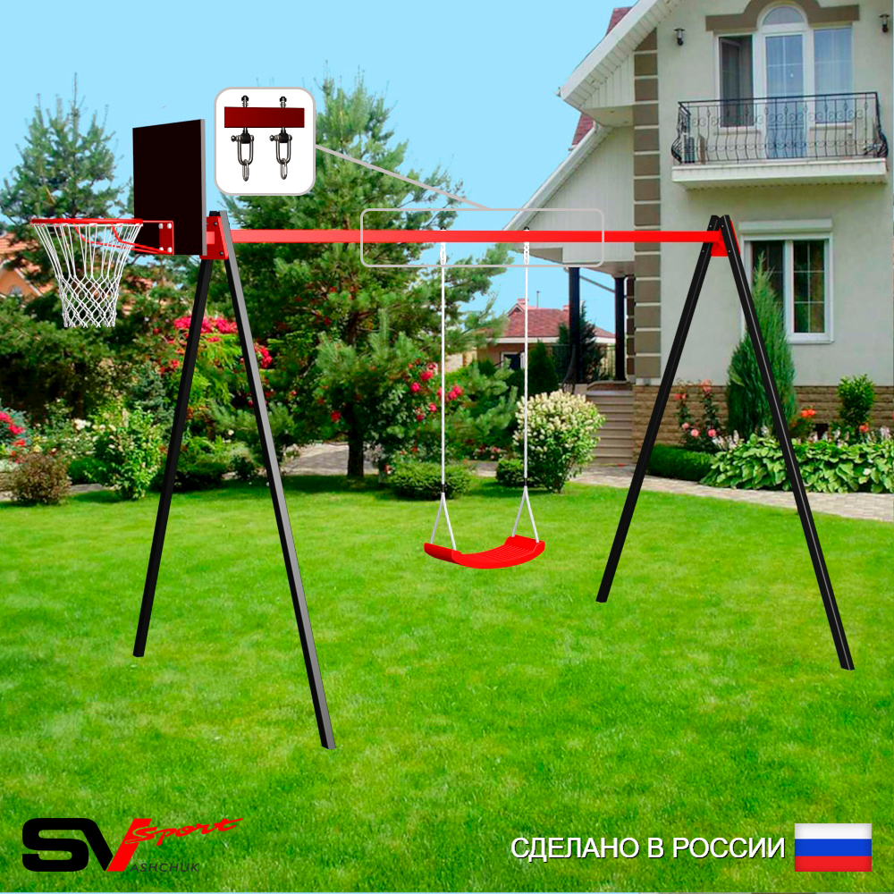 КОМПЛЕКТАЦИЯ: Каркас УК Sv Sport 3.0м, Щит баскетбольный Sv Sport c кронштейном к УК Sv Sport, Качели пластиковые "Лодочка", Подвесы для качелей на втулке Sv Sport 1 компл.