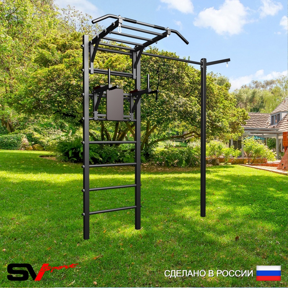 КОМПЛЕКТАЦИЯ: Уличная шведская стенка Sv Sport, Турник Sv Sport Рукоход к УШС, Брусья Sv Sport к УШС, Кронштейн для подвеса боксерского мешка, Комплект турник прямой.