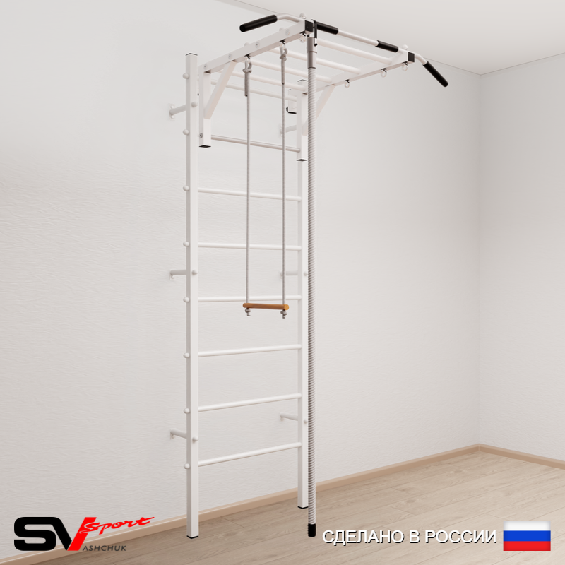 КОМПЛЕКТАЦИЯ: Шведская стенка Sv Sport (профиль вертикальных стоек 40 х 40 х 2 мм), Турник Sv Sport рукоход к ШС, Kанат, Трапеция.
