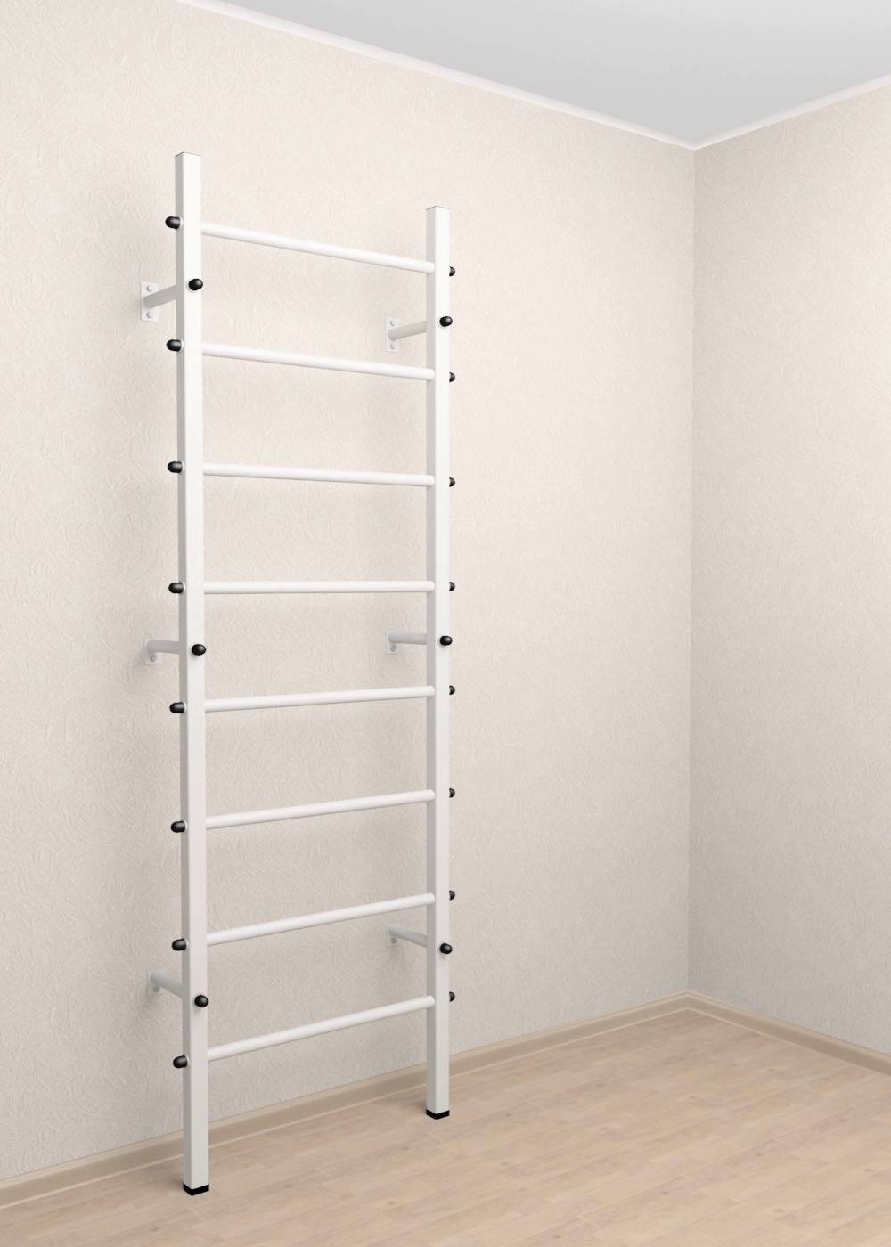 Стойки шведской стенки Sv Sport усиленной изготовлены из профильной трубы 60 х 40 х 2 мм. Ступени изготовлены из круглой, стальной трубы, покрытой резиной (не скользят, не натирают мозоли, не прокручиваются, не имеют запаха, приятны на ощупь). Устанавливается к стене при помощи 6 кронштейнов. Окрашены качественной, импортной порошковой краской в 2 этапа, устойчивой к коррозии, истиранию и температурным перепадам. Все торцы, болты, гайки заглушены пластиковыми заглушками.
