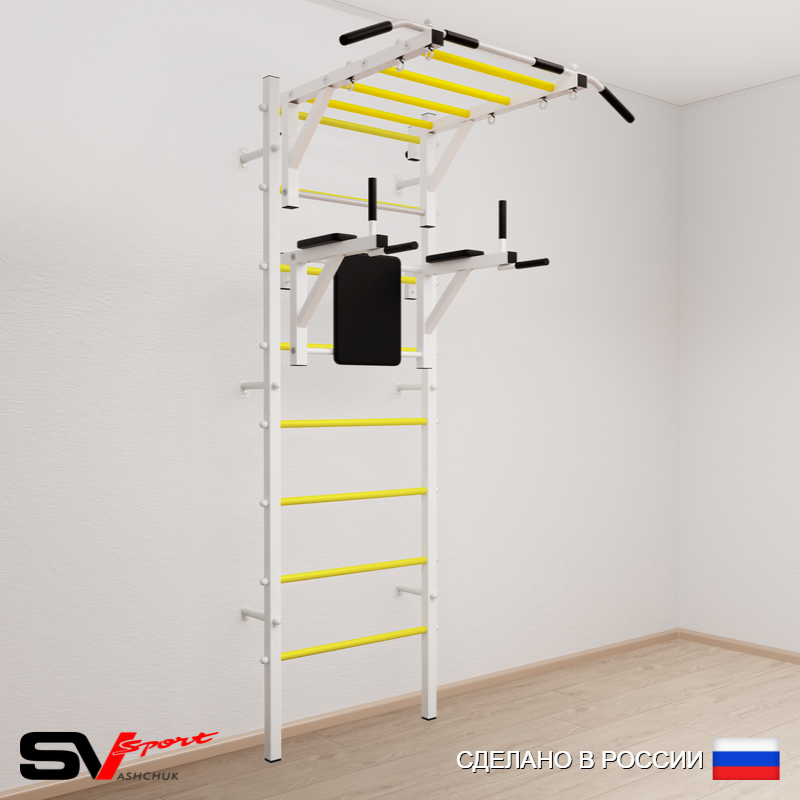 КОМПЛЕКТАЦИЯ: Шведская стенка Sv Sport усиленная (профиль вертикальных стоек 60 х 40 х 2 мм), Турник Sv Sport рукоход к ШС, Брусья Sv Sport к ШС.