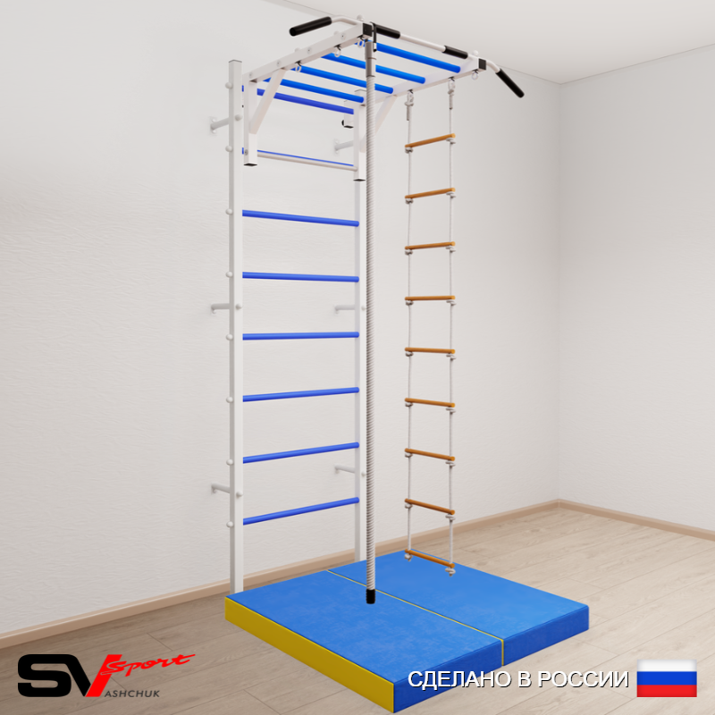 КОМПЛЕКТАЦИЯ: Шведская стенка Sv Sport усиленная (профиль вертикальных стоек 60 х 40 х 2 мм), Турник Sv Sport рукоход к ШС, Kанат, Лестница веревочная, Спортивный мат 100 х 100 х 10 см складной.