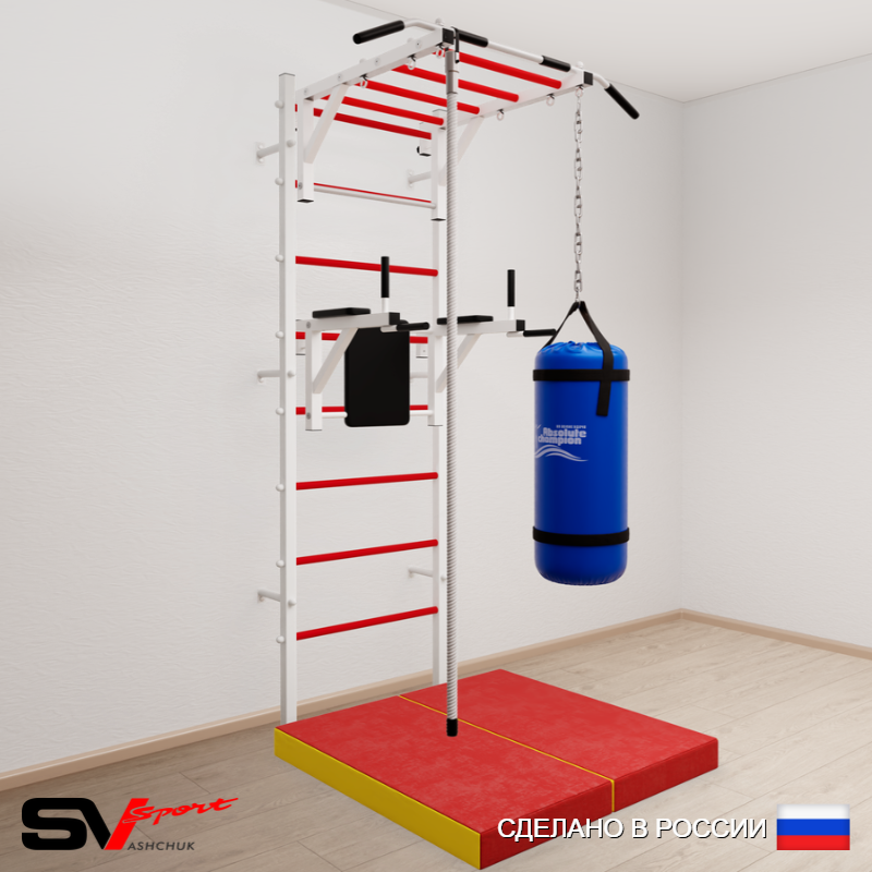 КОМПЛЕКТАЦИЯ: Шведская стенка Sv Sport усиленная (профиль вертикальных стоек 60 х 40 х 2 мм), Турник Sv Sport рукоход к ШС, Брусья Sv Sport к ШС, Kанат, Цепь удлинитель 90см, Мешок боксерский 15кг, Спортивный мат 100 х 100 х 10 см складной.