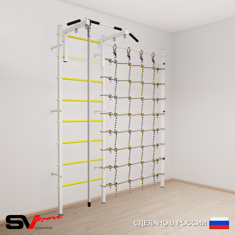 КОМПЛЕКТАЦИЯ: Шведская стенка Sv Sport (профиль вертикальных стоек 40 х 40 х 2 мм), Турник Sv Sport стандарт к ШС, Kанат, Канатный лаз.