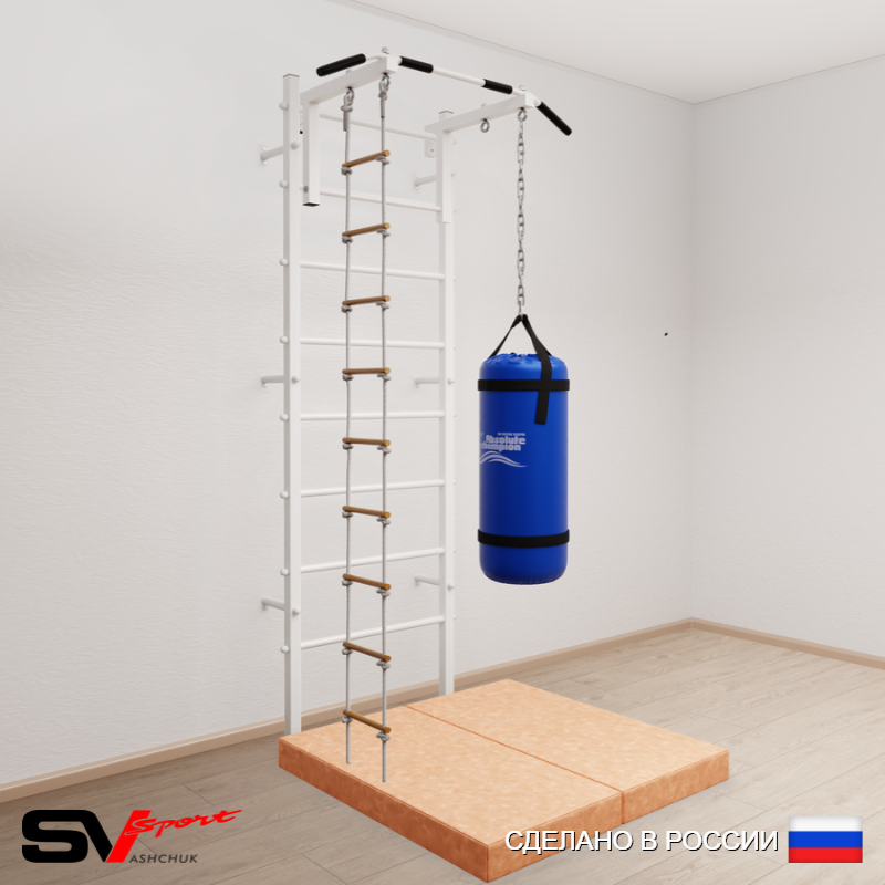 КОМПЛЕКТАЦИЯ: Шведская стенка Sv Sport (профиль вертикальных стоек 40 х 40 х 2 мм), Турник Sv Sport стандарт к ШС, Лестница веревочная, Цепь удлинитель 90см, Мешок боксерский 15кг, Спортивный мат 100 х 100 х 10 см складной.
