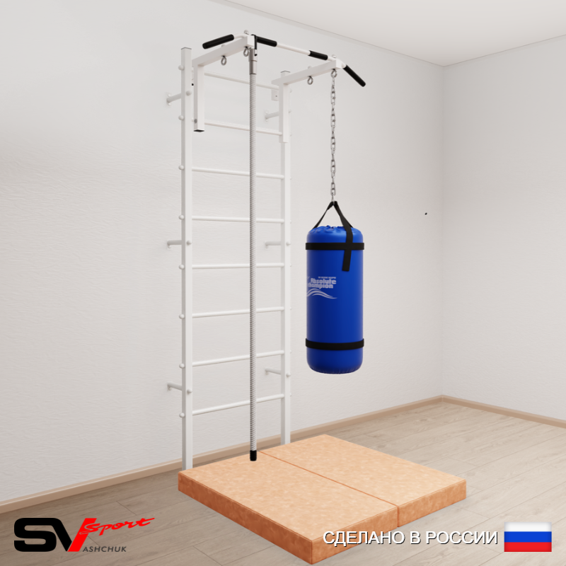 КОМПЛЕКТАЦИЯ: Шведская стенка Sv Sport усиленная (профиль вертикальных стоек 60 х 40 х 2 мм), Турник Sv Sport стандарт к ШС, Kанат, Цепь удлинитель 90см, Мешок боксерский 15кг, Спортивный мат 100 х 100 х 10 см складной.