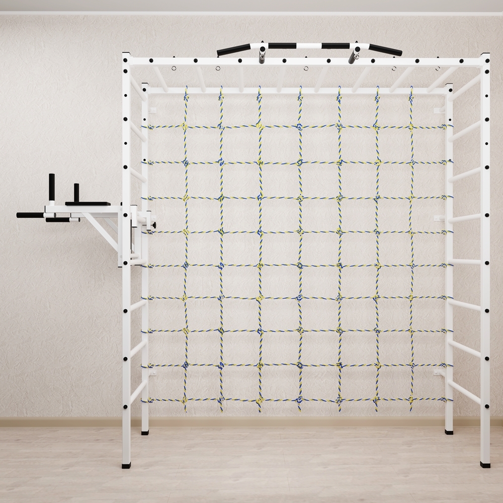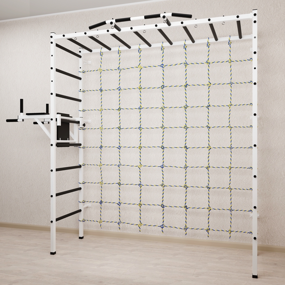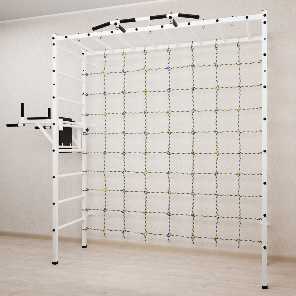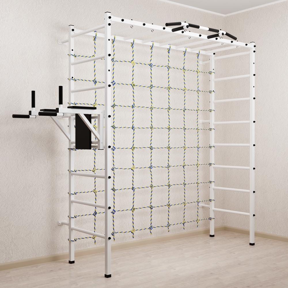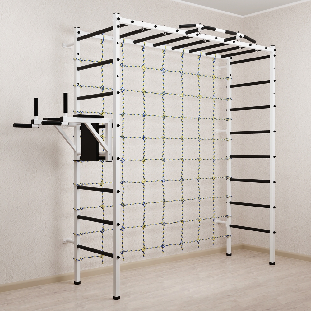 Основные характеристики: Максимально допустимая нагрузка 200 кг; Вылет брусьев от шведской стенки 68 см; Ширина креплений брусьев 54 см; Полимерная покраска; Резиновые ручки длина 16 см; Цвет покраски: белый; Гарантия 24 месяца.