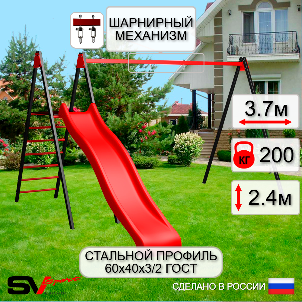 КОМПЛЕКТАЦИЯ: Каркас УК Sv Sport 3.7м, Комплект горка Sv Sport к уличным качелям, Подвесы для качелей на втулке Sv Sport 1 компл.