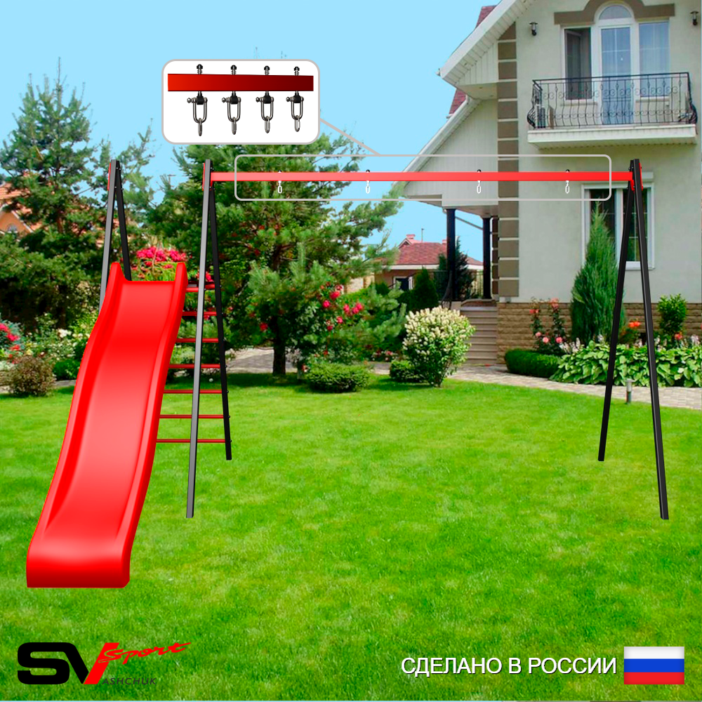 КОМПЛЕКТАЦИЯ: Каркас УК Sv Sport 3.7м, Комплект горка Sv Sport к уличным качелям, Подвесы для качелей на втулке Sv Sport 2 компл.