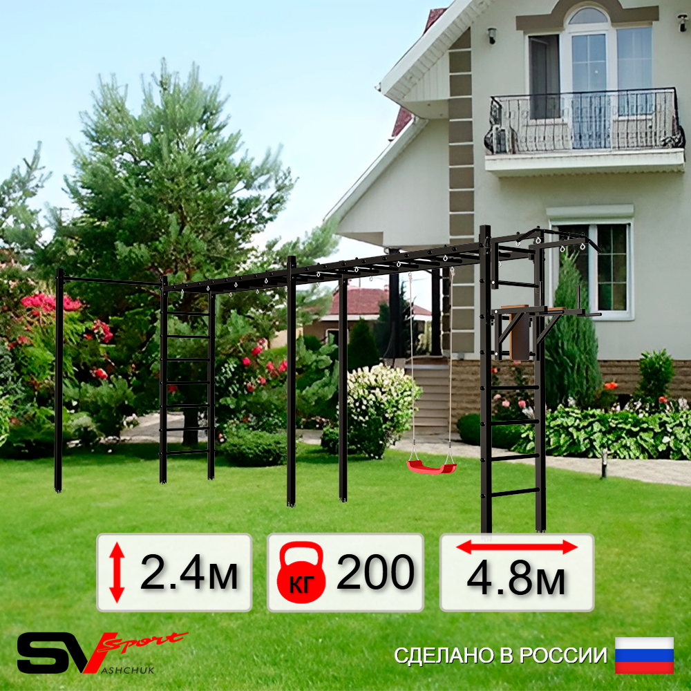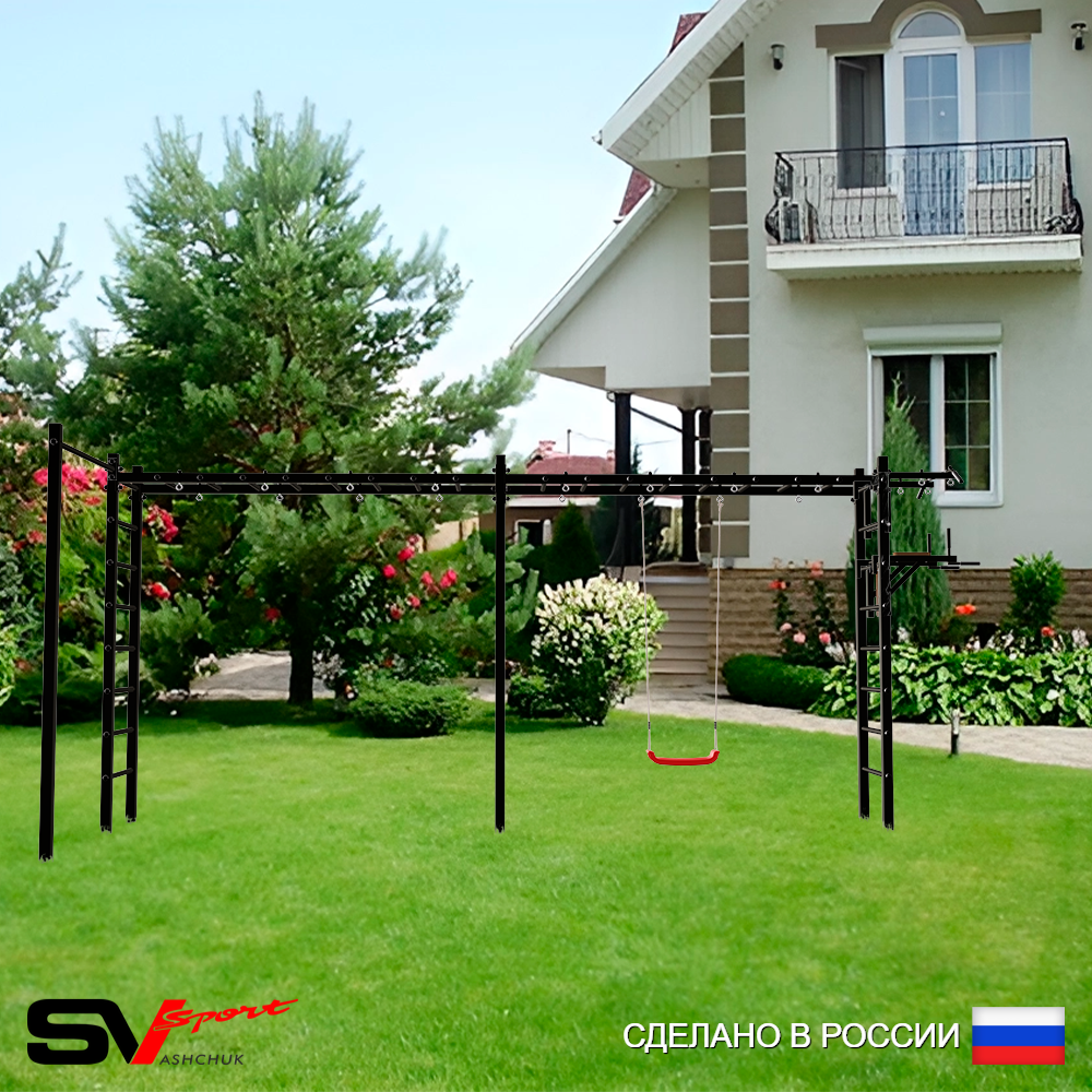 КОМПЛЕКТАЦИЯ: Каркас УШС Sv Sport Рукоход х 2, Турник Sv Sport стандарт к УШС, Брусья Sv Sport к УШС, Качели пластиковые "Лодочка", Комплект турник прямой.