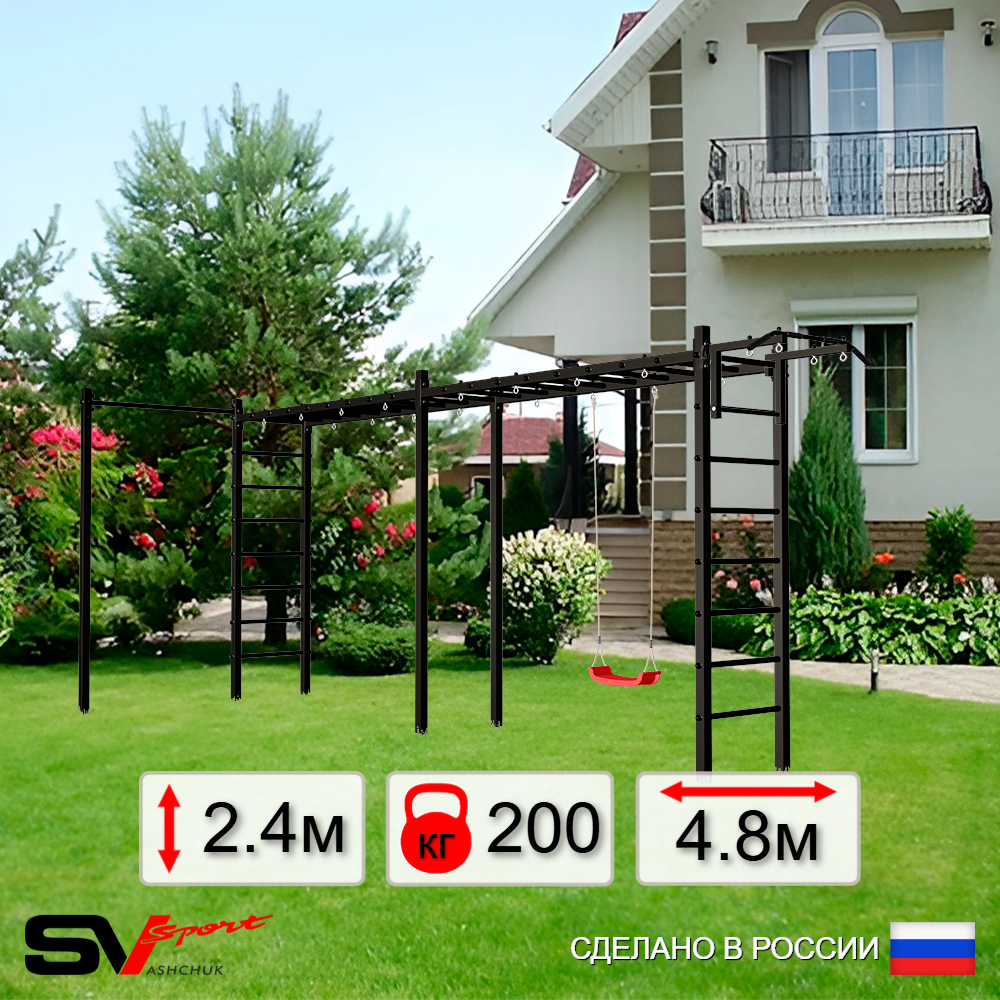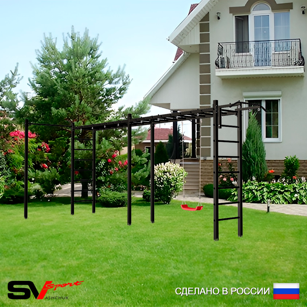 КОМПЛЕКТАЦИЯ: Каркас УШС Sv Sport Рукоход х 2, Турник Sv Sport стандарт к УШС, Качели пластиковые "Лодочка", Комплект турник прямой.