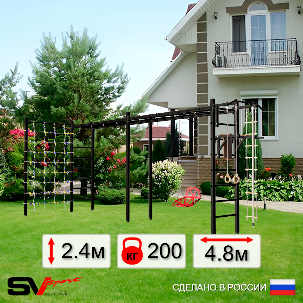КОМПЛЕКТАЦИЯ: Каркас УШС Sv Sport Рукоход х 2, Турник Sv Sport стандарт к УШС, Брусья Sv Sport к УШС, Качели - гнездо 115см, Щит баскетбольный Sv Sport c кронштейном к УШС Sv Sport, Кронштейн для подвеса боксерского мешка, Сетка к спортивному комплексу, Комплект турник прямой 2шт.