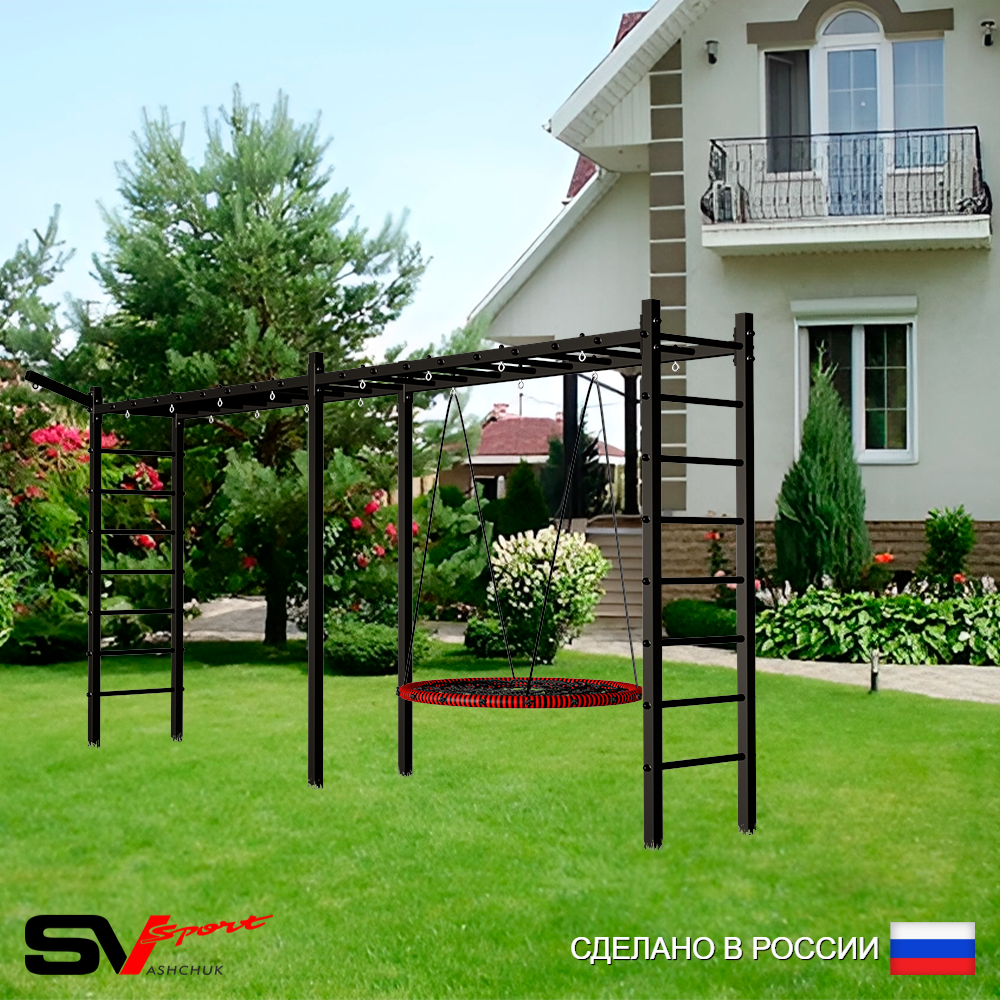 КОМПЛЕКТАЦИЯ: Каркас УШС Sv Sport Рукоход х 2, Брусья Sv Sport к УШС, Стойка под штангу Sv Sport к УШС, Скамья для пресса и жима Sv Sport к УШС, Качели пластиковые "Лодочка", Сетка к спортивному комплексу, Комплект турник прямой.