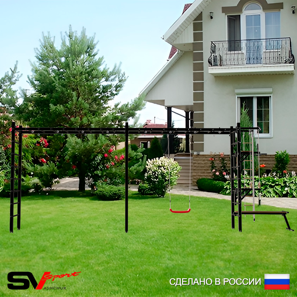 КОМПЛЕКТАЦИЯ: Каркас УШС Sv Sport Рукоход х 2, Турник Sv Sport стандарт к УШС, Брусья Sv Sport к УШС, Скамья для пресса и жима Sv Sport к УШС, Качели - гнездо 100см, Щит баскетбольный Sv Sport c кронштейном к УШС Sv Sport, Кронштейн для подвеса боксерского мешка.