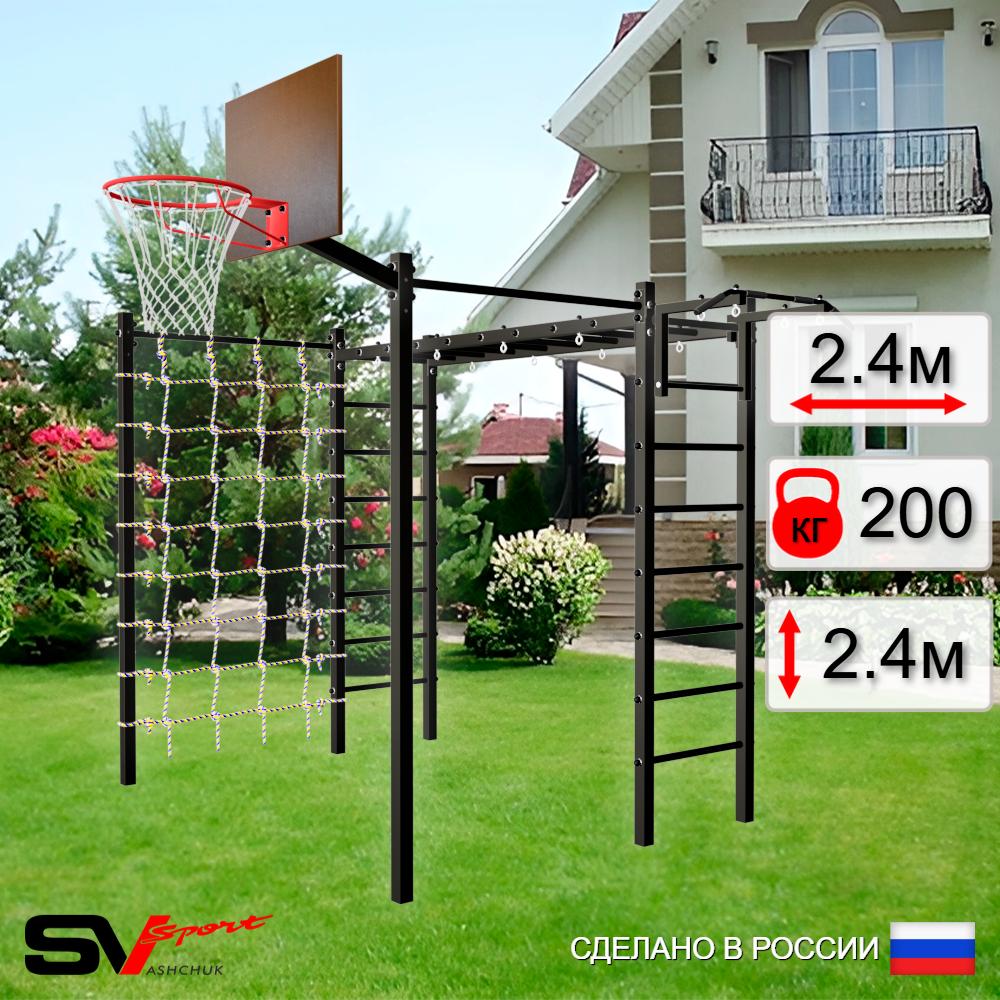 КОМПЛЕКТАЦИЯ: Каркас УШС Sv Sport Рукоход, Турник Sv Sport стандарт к УШС, Брусья Sv Sport к УШС, Качели - гнездо 115см, Сетка к спортивному комплексу, Комплект турник прямой 2шт.