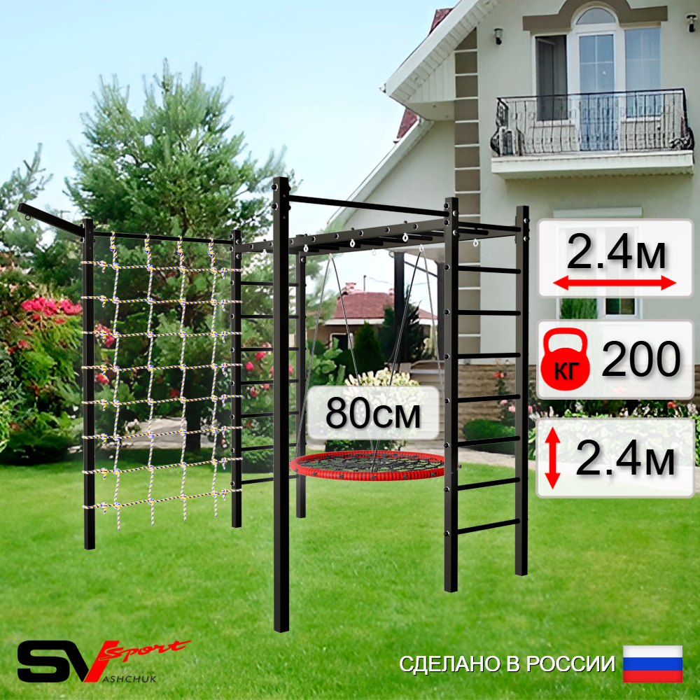 КОМПЛЕКТАЦИЯ: Каркас УШС Sv Sport Рукоход, Брусья Sv Sport к УШС, Скамья для пресса и жима Sv Sport к УШС, Качели пластиковые со спинкой на цепях, Сетка к спортивному комплексу, Комплект турник прямой 2шт.