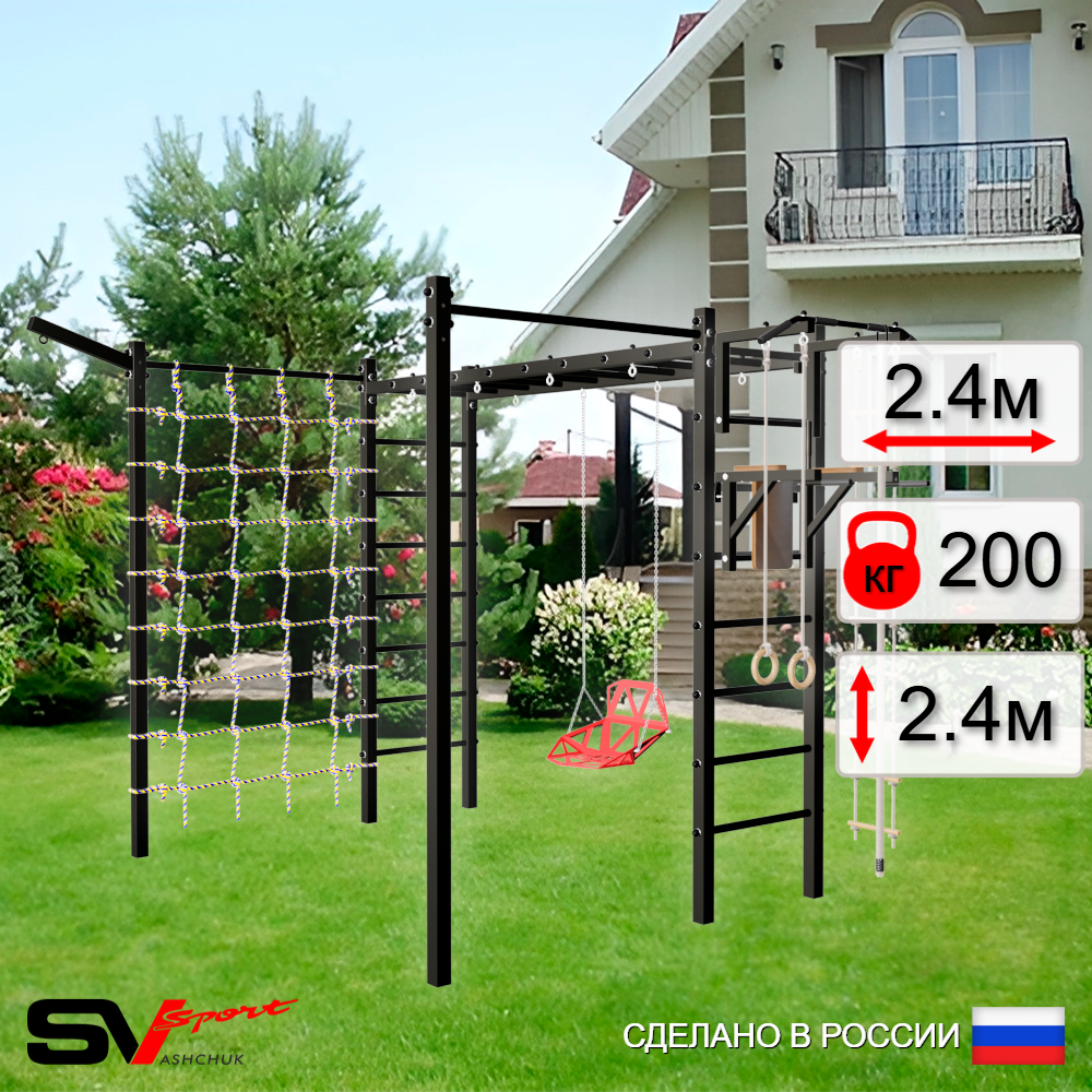 КОМПЛЕКТАЦИЯ: Каркас УШС Sv Sport Рукоход х 2, Брусья Sv Sport к УШС, Стойка под штангу Sv Sport к УШС, Скамья для пресса и жима Sv Sport к УШС, Качели - гнездо 80см, Кронштейн для подвеса боксерского мешка.