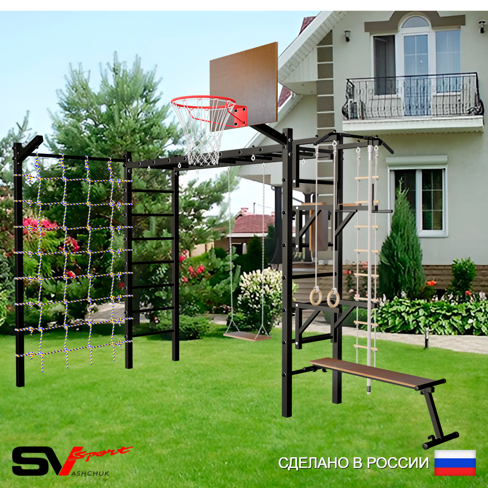 КОМПЛЕКТАЦИЯ: Каркас УШС Sv Sport Рукоход, Брусья Sv Sport к УШС, Стойка под штангу Sv Sport к УШС, Скамья для пресса и жима Sv Sport к УШС, Качели - гнездо 115см, Щит баскетбольный Sv Sport c кронштейном к УШС Sv Sport, Кронштейн для подвеса боксерского мешка, Сетка к спортивному комплексу, Комплект турник прямой.