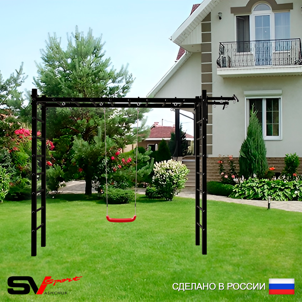 КОМПЛЕКТАЦИЯ: Каркас УШС Sv Sport Рукоход, Турник Sv Sport стандарт к УШС, Качели пластиковые "Лодочка".