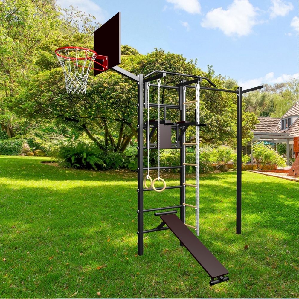Уличная шведская стенка Sv Sport изготовлена из профильной трубы 60 х 60 х 4 мм. Ступени изготовлены из круглой, стальной трубы, покрытой резиной (не скользят, не натирают мозоли, не прокручиваются, не имеют запаха, приятны на ощупь). Окрашена качественной, импортной порошковой краской в 2 этапа, устойчивой к коррозии, истиранию и температурным перепадам. Все торцы, болты, гайки заглушены пластиковыми заглушками. Устанавливаются стойки путем бетонировки на глубину не менее 600 мм.