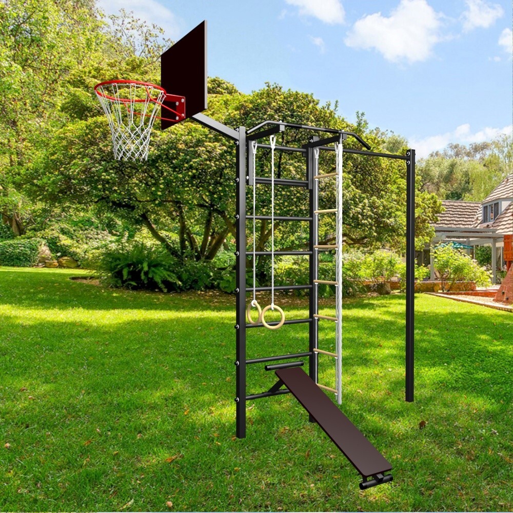 Уличная шведская стенка Sv Sport изготовлена из профильной трубы 60 х 60 х 4 мм. Ступени изготовлены из круглой, стальной трубы, покрытой резиной (не скользят, не натирают мозоли, не прокручиваются, не имеют запаха, приятны на ощупь). Окрашена качественной, импортной порошковой краской в 2 этапа, устойчивой к коррозии, истиранию и температурным перепадам. Все торцы, болты, гайки заглушены пластиковыми заглушками. Устанавливаются стойки путем бетонировки на глубину не менее 600 мм.