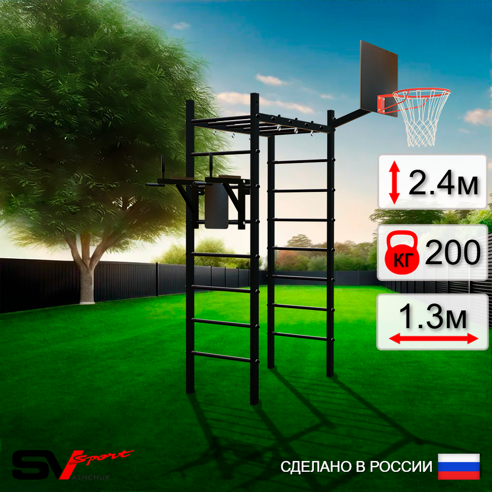 КОМПЛЕКТАЦИЯ: Каркас УСИК Sv Sport Рукоход, Брусья Sv Sport к УШС, Щит баскетбольный Sv Sport c кронштейном к УШС Sv Sport.