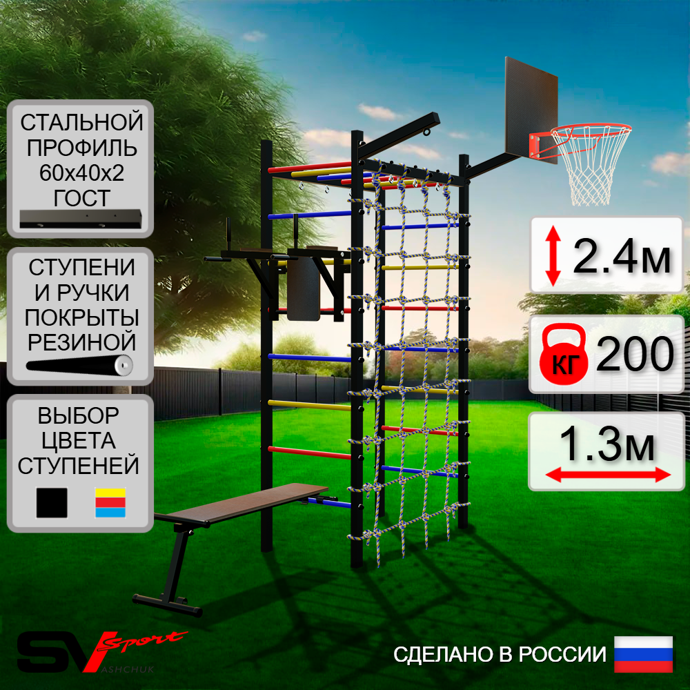 Изготовлена из синтетического материала устойчивого к температурным перепадам. Сетка к спортивному комплексу - отличное дополнение любой модели Уличной шведской стенки Sv Sport.