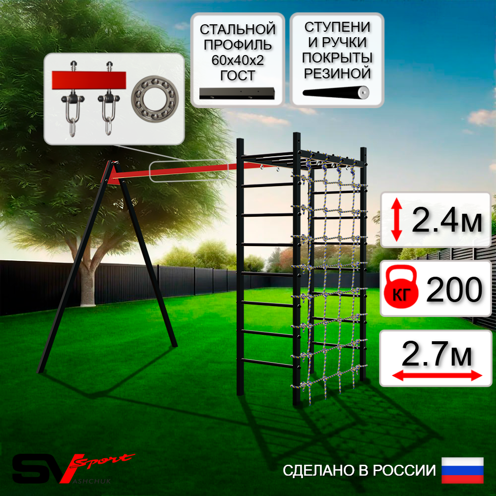 КОМПЛЕКТАЦИЯ: Каркас УСИК Sv Sport, Подвесы для качелей на подшипниках Sv Sport, Сетка к спортивному комплексу.