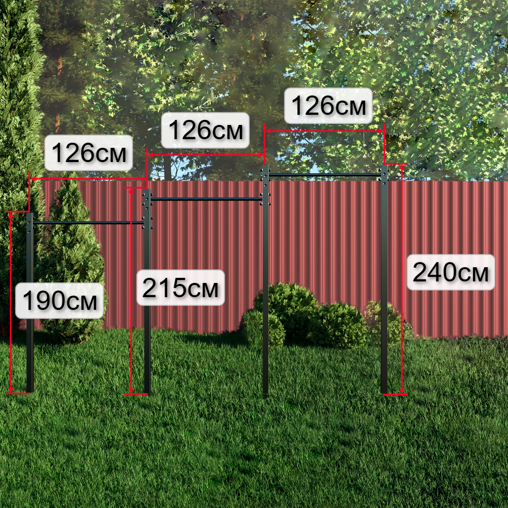 Уличный турник Sv Sport - надежное и качественное оборудование для уличных тренировок. Изготовлен из прочной стали, окрашен порошковой краской, устойчивой к коррозии. Максимальная нагрузка 200 кг, гарантия 24 месяца. Установка путем бетонирования на глубину не менее 600 мм. Подходит для спортивных площадок и дворовых территорий. Изготовлен из профильной трубы 60 х 60 х 4 мм и круглой стальной трубы d 33,5 мм и толщиной 2,8 мм. Все торцы, болты, гайки заглушены пластиковыми заглушками.